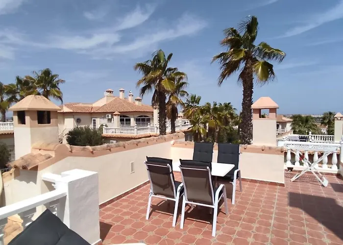 Schones Ruhiges Rooftop Apartment Mit Grosser Dachterrasse的住客可用室外游泳池.该公寓离比利亚马尔廷高尔夫俱乐部大约4公里. 这个公寓距离Region of Murcia International机场55公里.